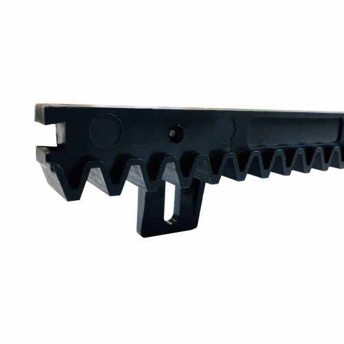 Рейка изготовлена из высокопрочного полимера. Полимер позволит уменьшить шум и трение при движении ворот, а также обеспечит плавность движения.