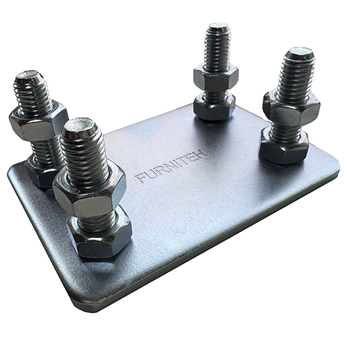 Готовые площадки со шпильками под роликовые опоры для откатных ворот. Площадки привариваются к фундаменту для откатных ворот, а сами ролики для откатных ворот крепятся к площадке при помощи шпилек и гаек. Это немного дороже, чем приварить опоры непосредственно к швеллеру, но избавляет Вас от ненужной возни и затрат времени, т.к. добиться точного выставления по одной прямой роликовых опор (если ролики будут стоять не по прямой, то будут сильно изнашиваться) без регулировочных подставок очень сложно.