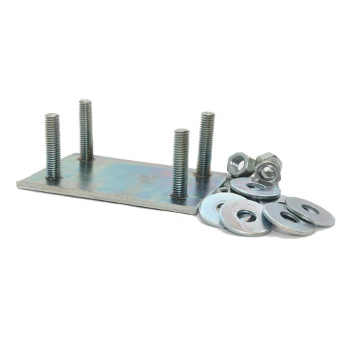Готовые площадки со шпильками под роликовые опоры для откатных ворот. Площадки привариваются к фундаменту для откатных ворот, а сами ролики для откатных ворот крепятся к площадке при помощи шпилек и гаек. Это немного дороже, чем приварить опоры непосредственно к швеллеру, но избавляет Вас от ненужной возни и затрат времени, т.к. добиться точного выставления по одной прямой роликовых опор (если ролики будут стоять не по прямой, то будут сильно изнашиваться) без регулировочных подставок очень сложно.